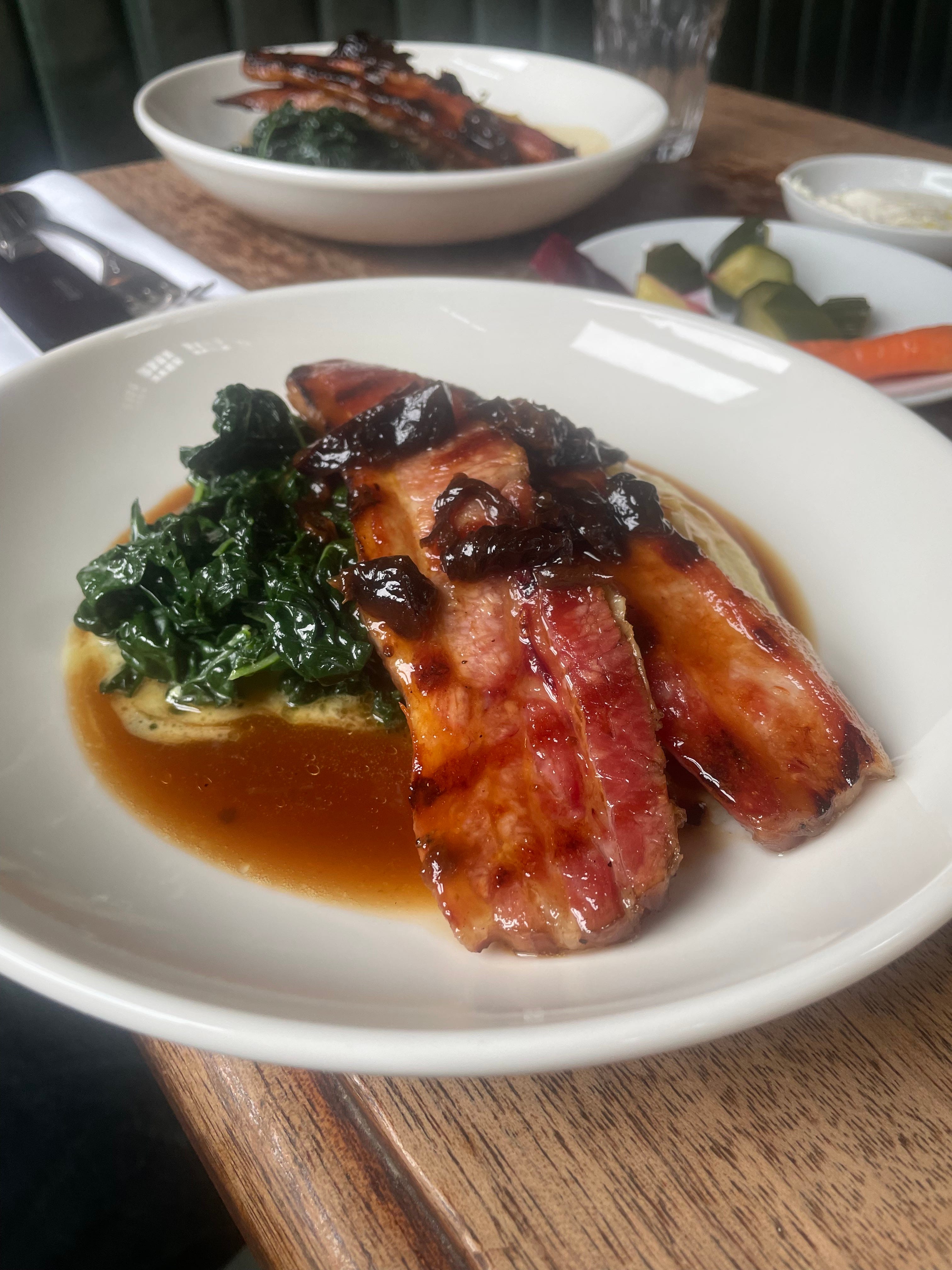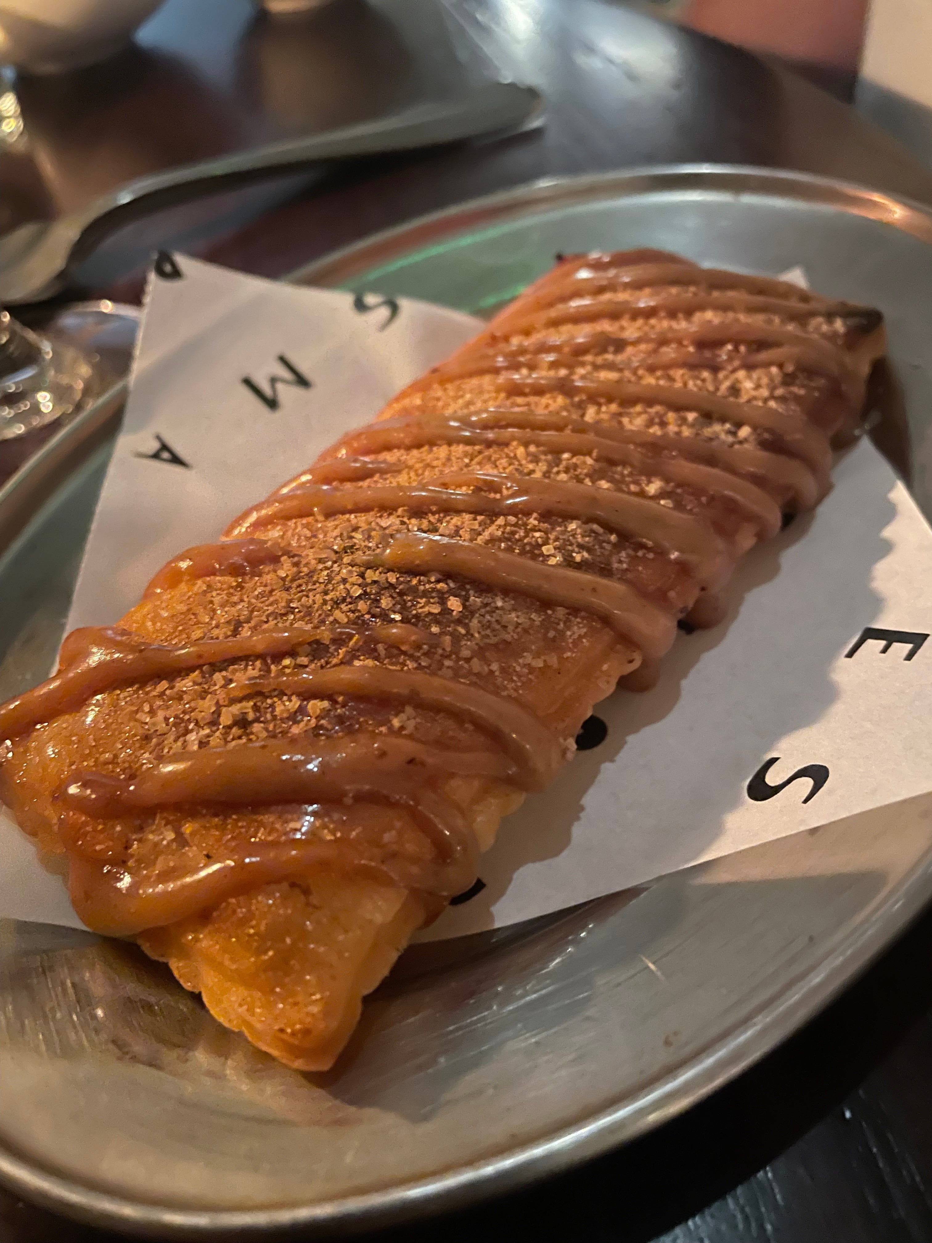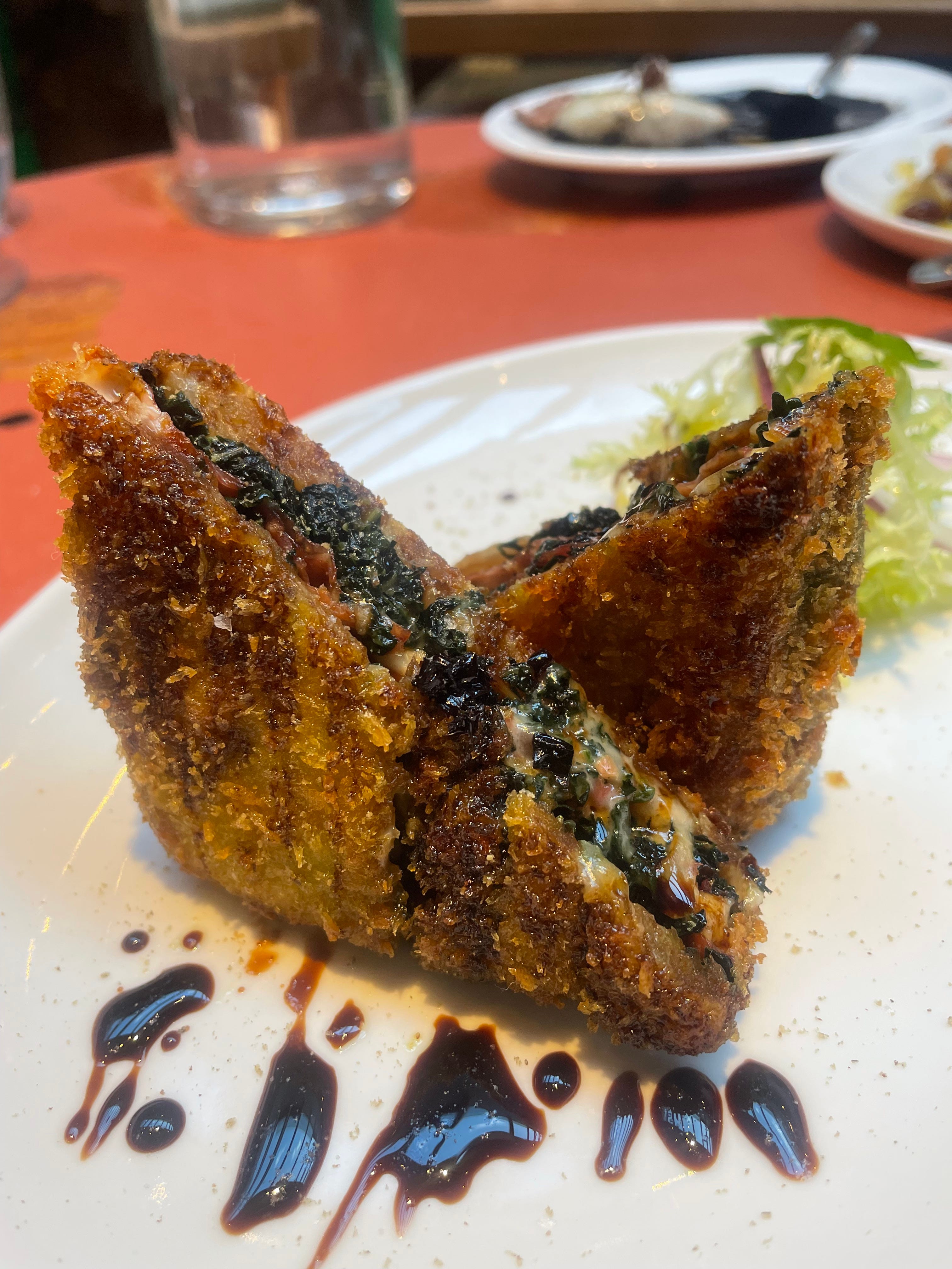 All I will add to the conversation is this: whatever you may have half-absorbed about Legado does not do justice to the urgent brilliance of actually eating there. Battered monkfish nuggets and the known universe’s greatest pan con tomate; rich, mackerel meatballs bobbing in a clean, nuanced jamon dashi; the brain-breaking, decadent wonder of a deep-fried, chard and cured beef toastie. To sit in this featureless new-build unit beneath a railway bridge – transformed through a liberal hosing of cash into a lived-in, ruggedly glamorous farmhouse taberna – is to be almost overwhelmed by the breadth, skill and boldness evident in each detail. I have to cop to the fact that it was an invite lunch. But the fact that I’ve not been able to stop recommending it to people tells its own story. The multi-speed massiveness here is the point. And it is rare that a self-consciously big ticket spot with an £85 signature dish (the quarter of burnished suckling pig, so succulent that, in an indelible flex, it is theatrically chopped at the table with the blunt edge of a plate) also feels like somewhere you want to duck into for a six quid Estrella and a pintxo or three. This is how you do it.
